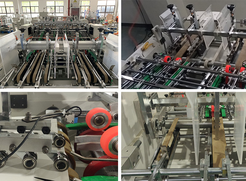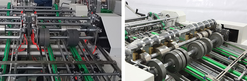 We are using same structure as the folder glue machine, the paper will be delivered more smoothly. And hard aluminium material, much better and use imported belt, the machine will stop if the machine doesn’t delivery paper or the machine is not in a correct way, we are also using servo motor for feeding.