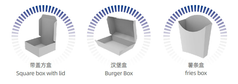 ZX-1600 Carton Erecting Machine is specially designed to produce a variety of food containers, such as hamburger boxes, hot dog trays, single piece boxes, Chinese takeaway boxes, French fry boxes, lunch boxes and meal boxes. Materials include cardboard, paper, paperboard and corrugated paper.