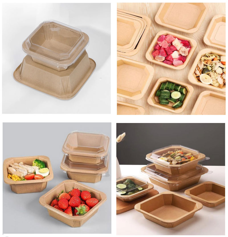 The automatic octagonal carton thermoforming machine is a fully automatic paper forming machine with the advantages of high speed and convenient operation. This model uses a self-contained hot air generator for single PE coated paper. It is used to produce single-color disposable paper lunch boxes through automatic feeding, heating (with hot air generating device), hot press forming (four corners of bonded lunch boxes), automatic point collection, and microcomputer control. Paper lunch boxes, cake tray, food packaging boxes, etc. Mechanical transmission, speed, energy saving, stability, and easy operation.